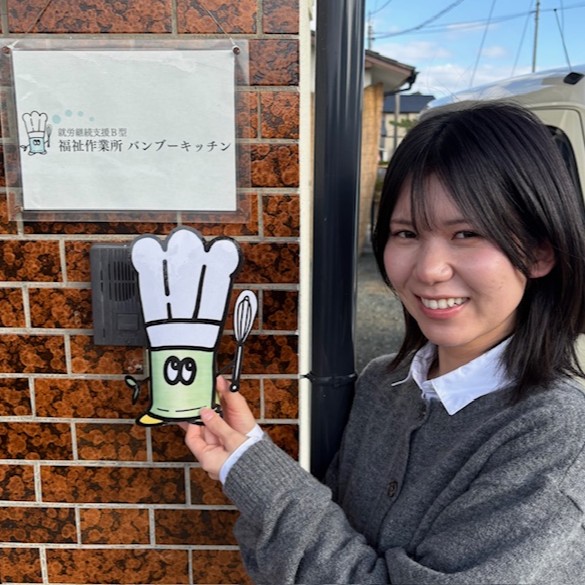 開設当所は不安も多くありましたが、今では障がい者支援の経験が豊富な信頼できるスタッフに支えられ、利用者さんに対しポジティブな声かけや親身になって関わる姿勢など、多くのことを学ばせてもらえているこの環境に、日々感謝しています。また、利用者さんがバンブーキッチンを利用されることで、以前より安定した生活が送れている様子がうかがえる時や笑顔が増えたと感じた時が今の仕事のやりがいです。ここが利用者さんらにとって欠けがえのない居場所となるよう、家族のように寄り添い、自立やステップアップを応援し、支えていきたいと思っています。