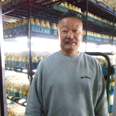 40歳まで土木業に携わり、脱サラして農家に転身しました。現在は、きのこの生産を行っています。福祉との関わりは、知人が就労継続支援B型事業所の設立を考えていると聞き、「それなら大木町で」と声をかけたことが始まりです。その後、「利用者を働かせてもらえないか」との依頼を受け、自社でも障がいのある方の雇用や、B型事業所へ作業を依頼するようになりました。