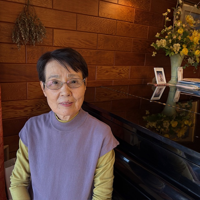 社協の介護予防事業や地域団体などで講師として活躍している荒巻さん。音大出身で、普段はご自宅でピアノの個人レッスンをしているそうです。