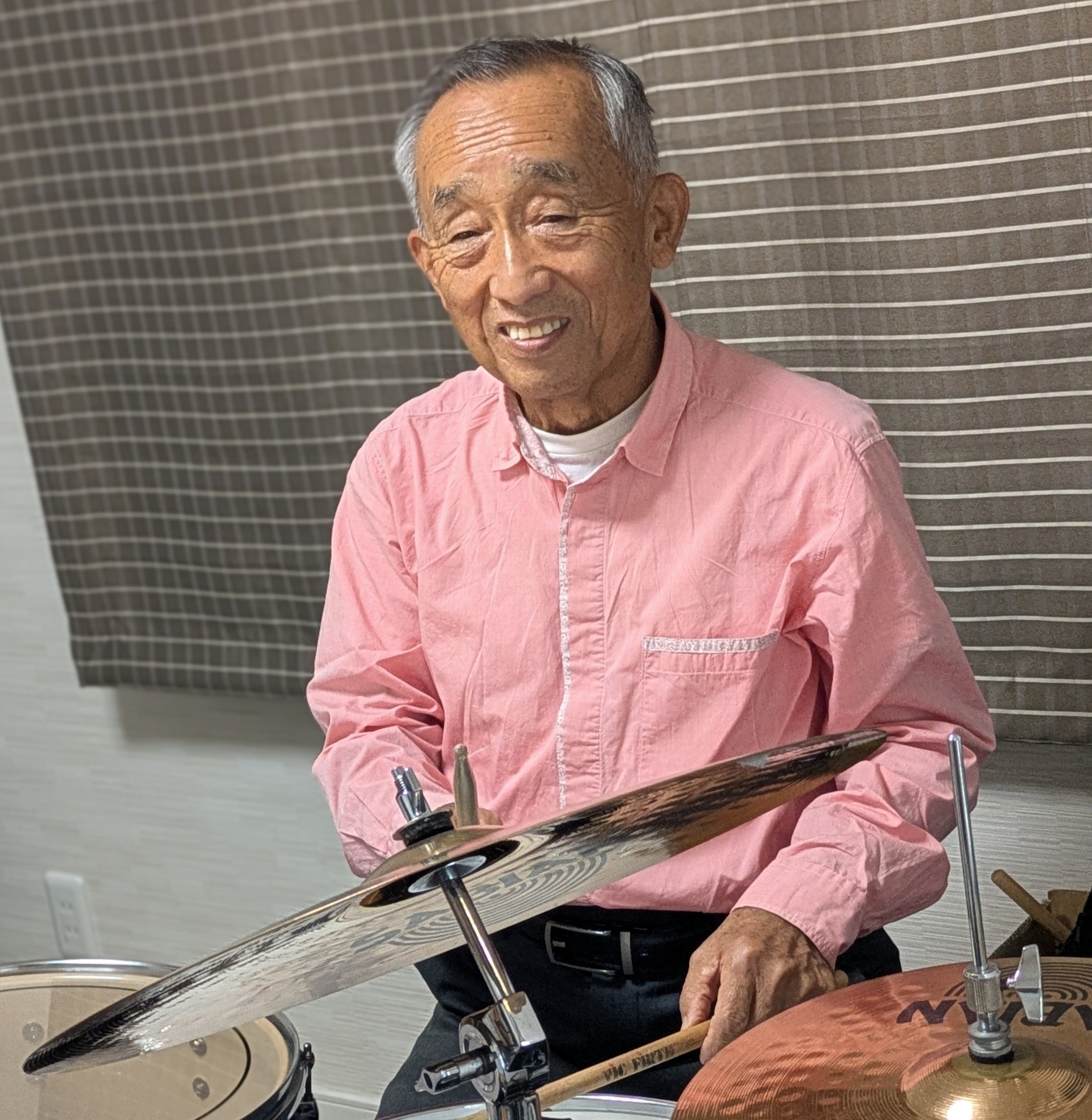 6年前からドラムを始められ、現在は町内の音楽仲間とバンドを結成し、サロンや老人クラブ、音楽イベントで活躍中!