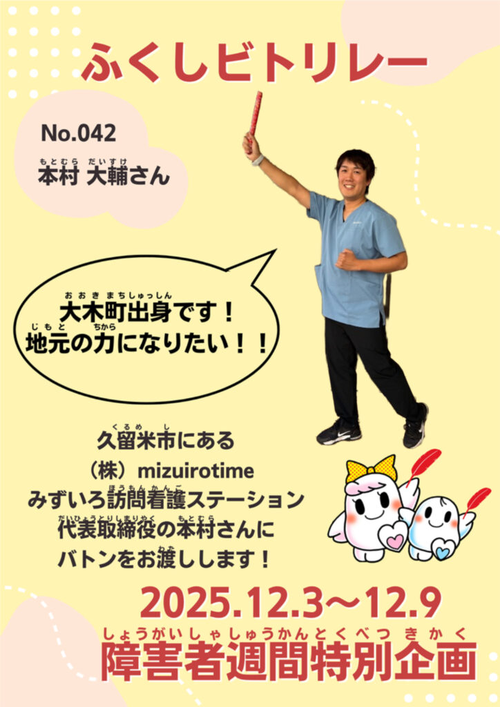 大木町の福祉に関わる人達(ふくしビト)を、リレー形式で繋いでいく「ふくしビトリレー」がスタート!!